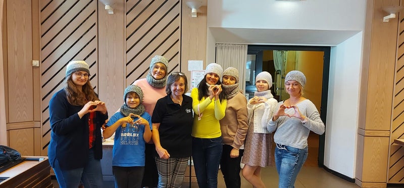 Einmal im Monat hat Pastor Thomas Köster die Gäste aus der Heliosklinik und Umgebung zum Kaffee trinken ins Gemeindehaus eingeladen. Wir organisierten eine kleine Kleiderkammer mit ausgelesenen Sachen, hier selbstgestrickte Mützen und Schals, die dankbar angenommen wurden.